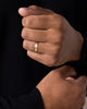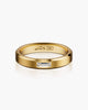 Subtle brilliance, sharp design. This 4mm Beveled Diamond Baguette Band features a .10 carat baguette-cut diamond, center-set into a slim solid gold band. With its crisp beveled edges and minimal profile, it’s a distinctive wedding ring that balances elegance and edge.