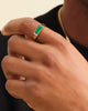 Green, gold, and bold: Our men’s gold Beveled Malachite Signet Ring has a richly colored green malachite stone set into a shiny, classic signet ring. Pair it with the Malachite Beverly Pendant for elevated styling.