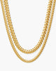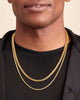 Two is better than one. This layered Cuban Link Chain stack features both 3mm and 5mm gauges for a clean, dimensional look. Each piece is finished with our new custom box clasp, engravable for free. The perfect gift for men who know the power of detail.
