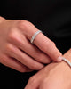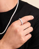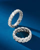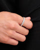 Make a statement with the Eternity Ring. This 3mm men’s ring is completely iced out with round-cut, diamond simulants handset into a classic silver band. This collection is all about leveling up.