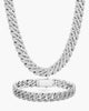 This dazzling duo is the set you need if you like to be the best dressed wherever you go. The silver Iced Out Set includes our 20" 10mm Iced Out Cuban Link Chain and Bracelet. With pavé diamond simulants and a secure box clasp, this combo is everything you need for the most luxurious fit.