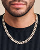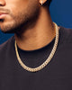 Our Cuban Collection just got a lot cooler with this icy addition. The 10mm gold Iced Out Cuban Link Chain has pavé diamond simulants and a secure box clasp. This Iced Cuban Chain is everything you need for the most luxurious fit.