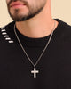 A timeless classic. The silver Mosaic Cross Pendant is an essential accessory for men looking to expand their silver jewelry collection, featuring sleek, angled edges and a fine brush finish. With this best-selling silver cross pendant necklace, getting dressed and showcasing your faith has never been easier. With proper stainless steel jewelry care, this piece will stay fresh through everyday wear.