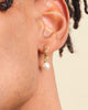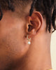 Round out your pearl focused fit with our gold Pearl Hoop Earrings. These men’s hoops feature a single, movable pearl to bring eye-catching movement and finesse to your look. Pair with our Pearl Rondelle Necklace or Cuban Link Pearl Necklace.
