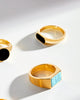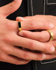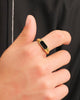Diversify your ring collection with our men’s gold Stadium Signet Ring. This ring has a next-level shine and a sleek black epoxy accent that shows off the clean lines atop this men’s signet ring. Made with quality materials, this ring is meant to withstand everyday wear and tear while maintaining its shine for years to come.