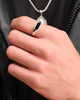 Diversify your ring collection with our men’s silver Stadium Signet Ring. This ring has a next-level shine and a sleek black epoxy accent that shows off the clean lines atop this men’s signet ring. Made with quality materials, this ring is meant to withstand everyday wear and tear while maintaining its shine for years to come.