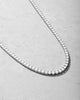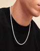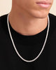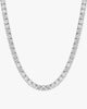 Serve looks with this icy piece. The silver 4mm Tennis Chain is fully iced-out with handset diamond simulants and a secure box clasp. This men’s chain remains effortless and durable as a classic accessory that goes with anything.