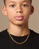 Step up their style with the 5mm gold Youth Figaro Chain, a bold take on a classic design. Its polished gold finish and distinctive Figaro links deliver a strong, modern look that works perfectly solo or layered. A standout piece for everyday wear with effortless edge. (Not intended for children twelve & under.)