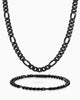 Make a bold statement with the black 5mm Figaro Set, featuring a matching chain and bracelet for a complete, polished look. The striking 5mm links and sleek black finish offer modern style and confidence, whether worn solo or layered. A versatile set designed for everyday wear with effortless impact.