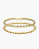 Bold yet versatile, the gold Cuban + Rope Bracelet Stack combines the strength of a 5mm Cuban with the intricate twist of a 3.5mm Rope. Together, they create a layered look that’s both modern and classic. Complete with our signature engravable box clasp, this stack is made for personalization and all-day wear.