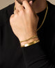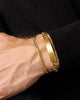 Stand out with the gold Cuban Link ID Bracelet Stack, a powerful pairing designed for presence and personalization. This set includes our bold 8mm Cuban Link ID Bracelet with an engravable plate, stacked with the 5mm Cuban Link Bracelet for a clean, layered look. Both bracelets are finished in radiant gold and secured with our upgraded signature box clasp for unmatched durability and shine. From daily wear to statement occasions, this stack delivers timeless style with a personal edge.