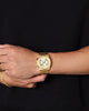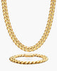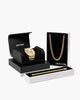 For the golden moments. This limited-edition bundle pairs the all-gold JX1 Chronograph Watch with our boldest 8mm Cuban Chain and Bracelet. All three pieces feature custom engraving: the chain and bracelet include our signature box clasps with complimentary engraving, and the watch caseback is engravable too—making this a standout gift with a personal touch.