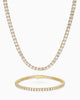 Shine from every angle with the 3mm Tennis Set in gold, featuring a matching chain and bracelet for a coordinated, polished look. Hand-set stones deliver brilliant sparkle, while the sleek 3mm profile offers modern versatility. Perfect for layering or wearing solo to elevate any outfit.