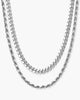We’ve upgraded one of our best-selling stacks with a bolder 3.5mm Rope Chain, paired with the timeless 5mm Cuban. The Cuban’s smooth, heavy links contrast with the Rope’s textured, diamond-cut twists for a standout pairing you can wear together or solo. Both chains are finished with our signature engravable box clasp, blending personalization with style.