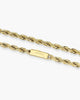 Chunky, bold, and built to last — the Rope Chain 5mm in gold features thick, intricately braided links for a polished, standout look. Designed for everyday wear, it includes our signature engravable box clasp for a personal touch. Perfect for layering or wearing solo for confident, modern style.