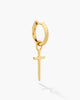 Be bold and defiant in our men's gold Dagger Cross Earring. This single earring features classic gold hoop with a daring dagger charm for playful, eye-catching movement. As always, our earrings are crafted with a 925 silver post for sensitive skin. Collect two to make it a set!