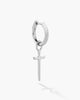 Be bold and defiant in our men's silver Dagger Cross Earring. This single earring features classic silver hoop with a daring dagger charm for playful, eye-catching movement. As always, our earrings are crafted with a 925 silver post for sensitive skin. Collect two to make it a set!