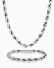 The Women’s 5mm Silver Rope Set brings bright, modern shine to your daily lineup. The chain and bracelet are finished with our signature engravable box clasp for a sleek, personal touch. Style them as a set for a crisp, standout look that feels fresh with every wear.