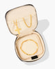 Keep your favorite jewelry pieces safe at home and on the go with our Black Travel Jewelry Case. The vegan leather exterior has a metallic sheen for a modern feel and a hard shell, perfect for travel. The interior has a super soft vegan leather lining and includes a pillow to keep your chains and other precious jewelry items safe from damage. Place smaller accessories like earrings and rings in the soft and secure pocket.