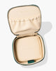 Keep your favorite jewelry pieces safe at home and on the go with our Emerald Travel Jewelry Case. The vegan leather exterior has a metallic sheen for a modern feel and a hard shell, perfect for travel. The interior has a super soft vegan leather lining and includes a pillow to keep your chains and other precious jewelry items safe from damage. Place smaller accessories like earrings and rings in the soft and secure pocket.