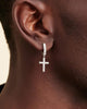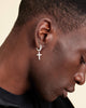 Get ready to rock this icy hoop. Our silver Hanging Studded Cross Earring has handset diamond simulants and a luxe silver setting. This lightweight men’s hoop earring can be worn on its own as a showstopper or dial up your fit and pair it with one of our other iced out pieces.