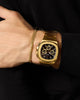 Build a standout wrist stack with the JX1 Chronograph Watch paired with the 5mm Cuban Link Bracelet. The chronograph features an engrave-ready caseback, while the bracelet is finished with our signature engravable box clasp for a personalized touch on both pieces. Worn together, this gold stack delivers confident style with everyday versatility.