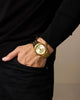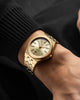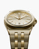 Its fully integrated architectural case flows into the 5-link Builders Bracelet, balancing strength and refinement with satin-brushed links and polished facets. The break-away butterfly clasp ensures a secure fit with a clean, modern finish, while the engrave-ready caseback adds a personal touch.