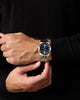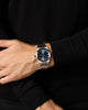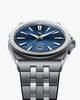 Its fully integrated architectural case flows into the 5-link Builders Bracelet, balancing strength and refinement with satin-brushed links and polished facets. The break-away butterfly clasp ensures a secure fit with a clean, modern finish, while the engrave-ready caseback adds a personal touch.