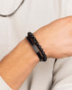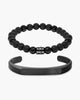 All black everything. Introducing our boldest men’s bracelet duo: the Hidden Hills black onyx beaded bracelet + black Ace Cuff. Each bead on our Hidden Hills bracelet is cut from Grade AAA black onyx stone, and offers organic texture and shape to balance the smooth lines and minimal design of the black cuff bracelet.