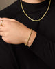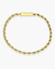 Sleek, bold, and impossible to ignore — the 3.5mm Rope Bracelet in gold features intricately woven links that shimmer with every move. Built for everyday wear, it includes our signature engravable box clasp for a personal touch and lasting durability. Perfect for layering or rocking solo.