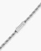 Add effortless shine to any outfit with the 3.5mm Rope Bracelet in silver. Crafted with tightly braided links for a polished, standout finish, it’s designed for lasting wear and includes our signature engravable box clasp for a customizable touch. A versatile piece made to stack or wear solo.