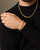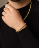 Bold and built to last, the 5mm Rope Bracelet in gold features thick, intricately woven links for standout style. Designed for everyday wear, it includes our signature engravable box clasp for a personalized touch, making it perfect to wear solo or stacked.