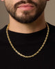 Chunky, bold, and built to last — the Rope Chain 5mm in gold features thick, intricately braided links for a polished, standout look. Designed for everyday wear, it includes our signature engravable box clasp for a personal touch. Perfect for layering or wearing solo for confident, modern style.
