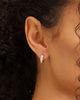 Turn heads with these stylish women’s Emerald Cut Inset Hoop Earrings. Our silver hoops with clear emerald-cut stones are tiny but bold, showcasing the sophistication of our Classic Hoops in a more understated design.