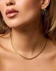 Polished, sleek, and versatile — the Women’s 3mm Franco Chain in gold features tightly woven chevron links for a clean, standout look. It pairs perfectly with the matching 3mm Franco Bracelet and includes our signature engravable box clasp for a personal touch. Layer it solo or stack for modern, confident style.