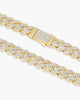 Effortless glamour, redefined. The Women’s 8mm Iced Out Cuban Set in gold glows with hand-set stones that catch the light in every move. The matching chain and bracelet feature a fully iced-out custom box clasp—bringing timeless shine with a touch of modern elegance.