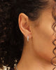 Our silver Iced Out Hoop Earrings for women are guaranteed to dial up your look. Pavé diamond simulants cover the front of these silver hoops, with the back showing off a glimmering silver shine.