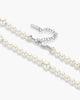 We've added a unique twist to our women's Pearl Necklace to make this timeless piece stand out. The Offset Pearl Necklace alternates 6mm and 8mm shell pearls, secured with a stainless steel silver clasp and extension chain. Create a bold statement with this stylish pearl necklace.
