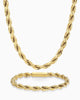 Add a touch of bold radiance with the Women’s 5mm gold Rope Set, crafted for effortless, everyday shine. The matching chain and bracelet feature our signature engravable box clasp, giving you a clean, customizable finish. Wear them together for a bold, elevated look that never goes unnoticed.